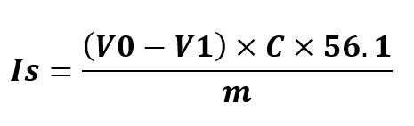 V۱ حجم محلول اسید کلریدریک استاندارد مصرف شده برای آزمون نمونه بر حسب میلی لیتر